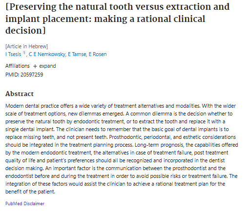 Source: Tsesis I, et al. Preserving the natural tooth vs. extraction and implant.